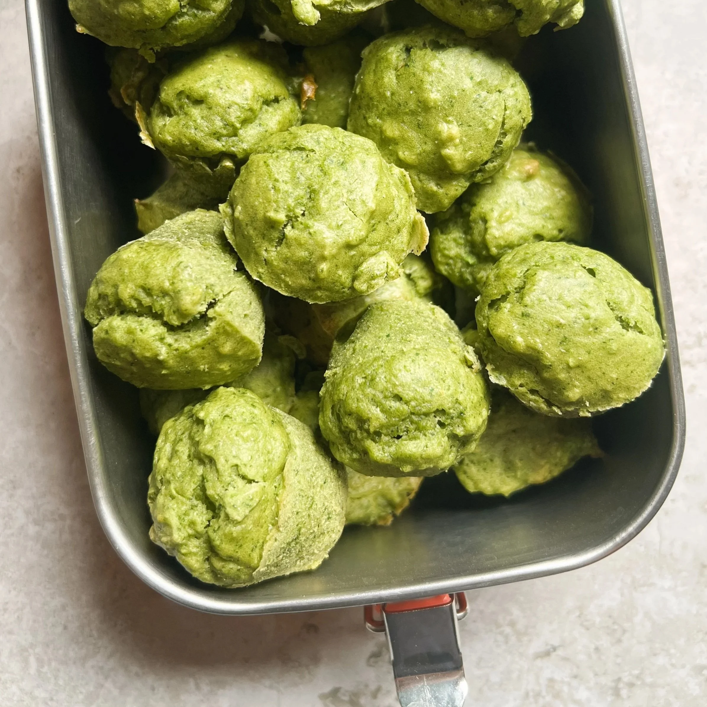 These green muffins are suuuper delicious. They are baby and toddler friendly, but can be enjoyed by the whole family- our toddler LOVED them but my boyfriend ate most of ours…