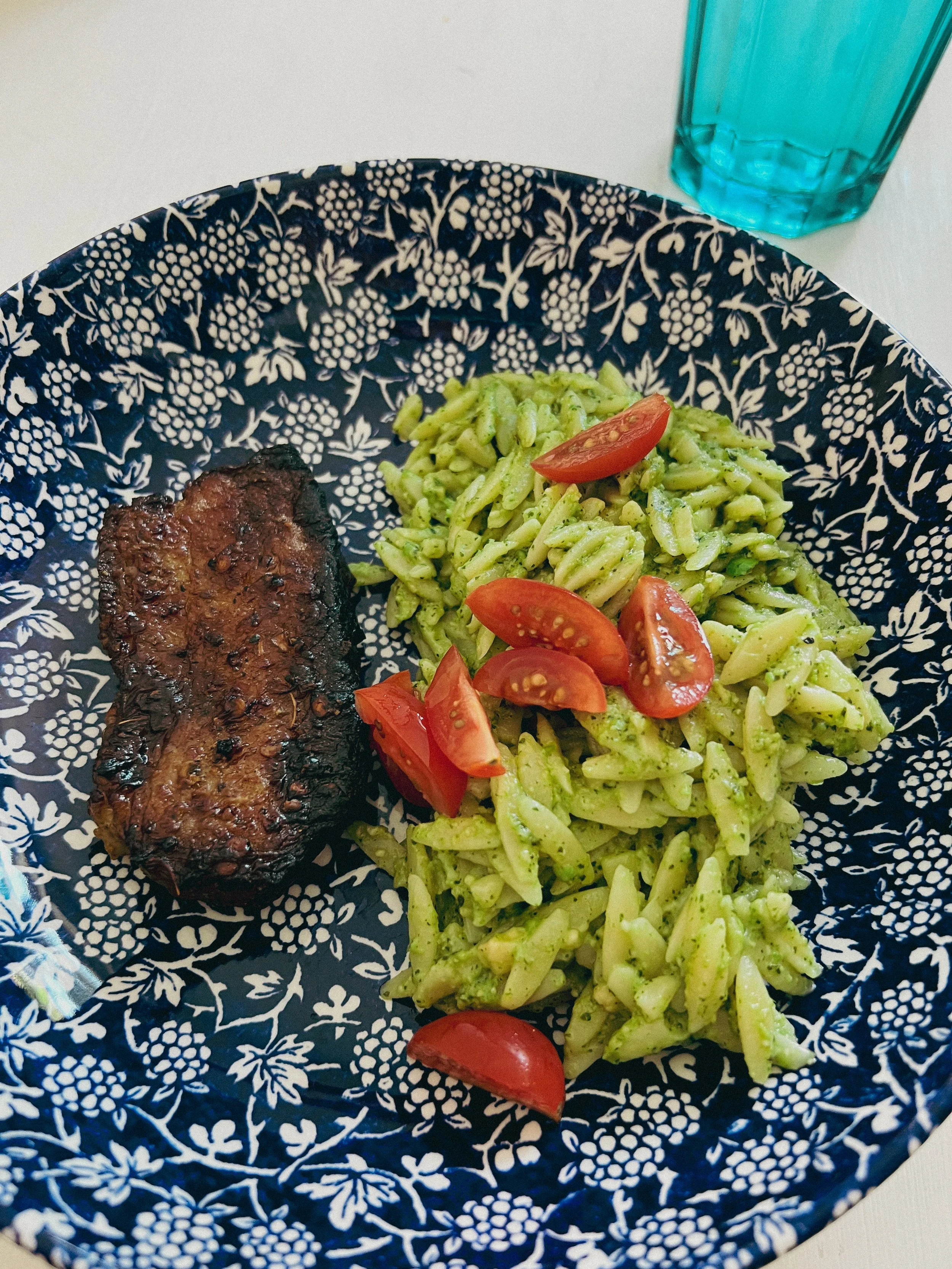 ~For adults I’ve served the pea pesto stirred through some orzo as per the above recipe, but for the adults this is served on the side of some crispy pork belly and fresh plum cherry tomatoes